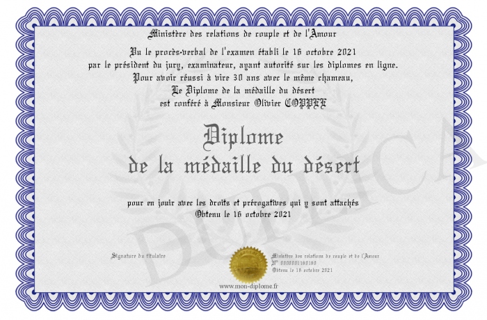 Envoyez par email votre Diplôme de la médaille du désert personalisé