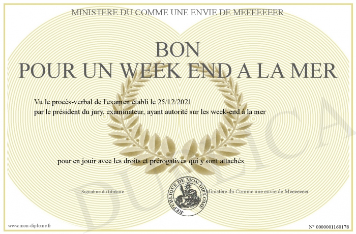 Envoyez par email votre BON POUR UN WEEK END A LA MER personalisé