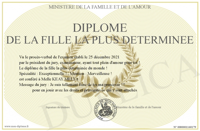 Envoyez par email votre Diplôme de la fille la plus déterminée personalisé