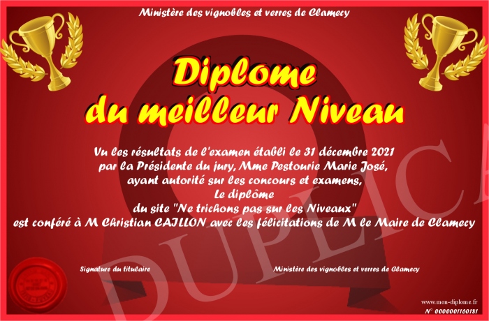 Envoyez par email votre Diplôme du meilleur Niveau personalisé