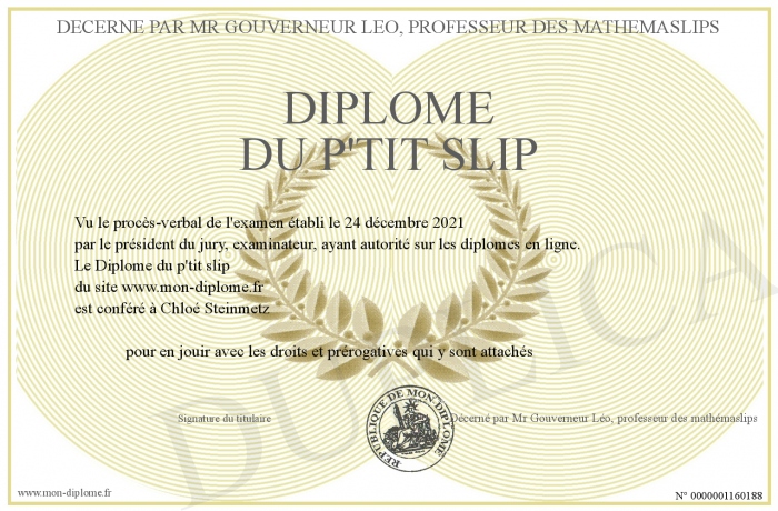 Envoyez par email votre Diplôme du p'tit slip personalisé
