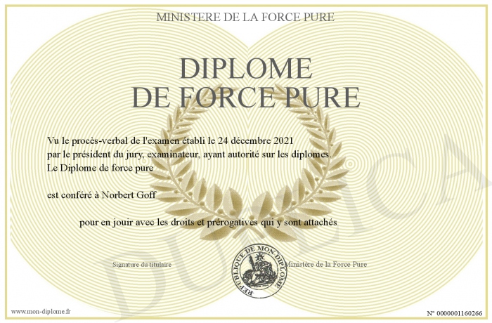 Envoyez par email votre Diplôme de force pure personalisé