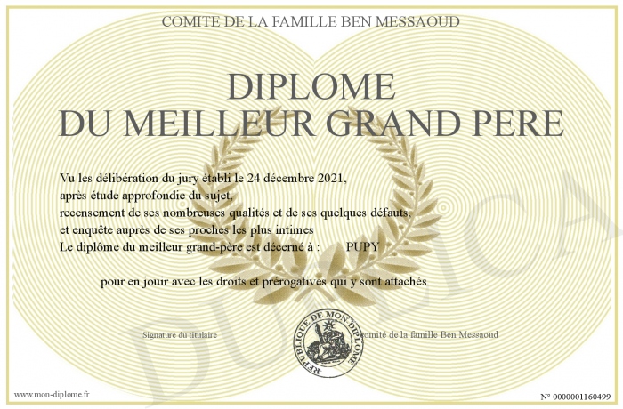 Envoyez par email votre diplôme du meilleur grand père personalisé