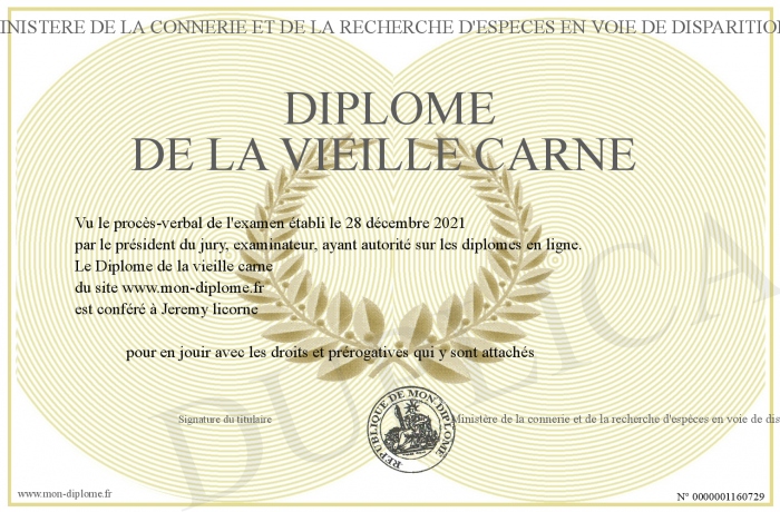 Envoyez par email votre Diplôme de la vieille carne personalisé