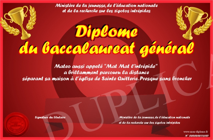 Envoyez par email votre Diplôme du baccalaureat général personalisé
