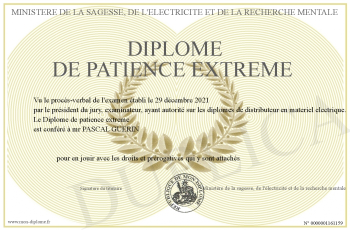 Envoyez par email votre Diplôme de patience extreme personalisé