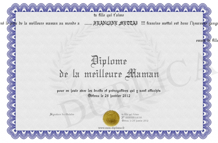 • Diplome de la meilleure Maman