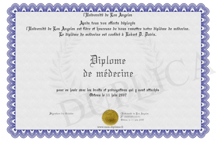 Envoyez par email votre Diplôme de médecine personalisé