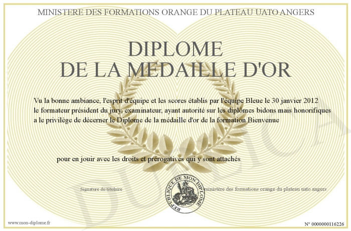 Envoyez par email votre Diplôme de la médaille d'or personalisé