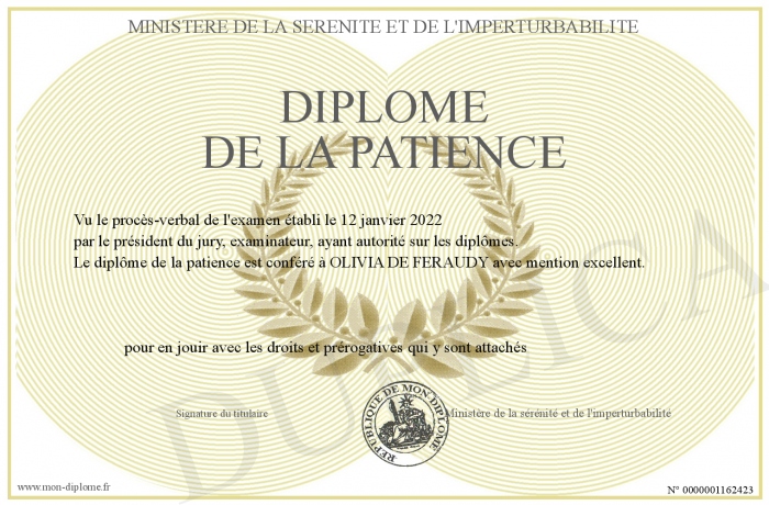 Envoyez par email votre Diplôme de la patience personalisé