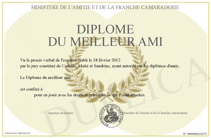 Envoyez par email votre Diplôme du meilleur ami personalisé