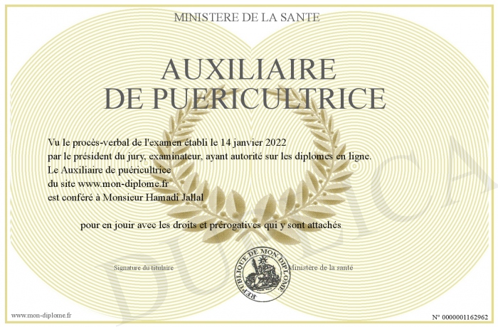 Envoyez par email votre Auxiliaire de puéricultrice personalisé