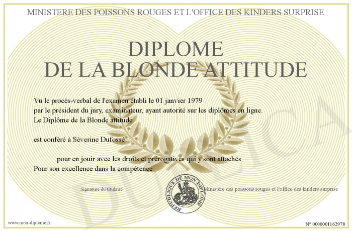 Envoyez par email votre Diplôme de la blonde attitude personalisé