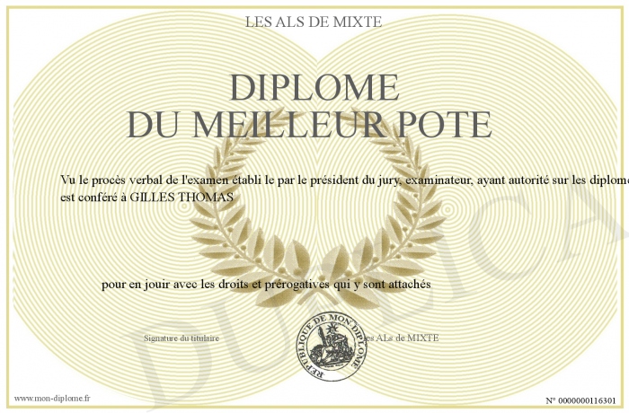 Envoyez par email votre Diplome du meilleur pote personalisé