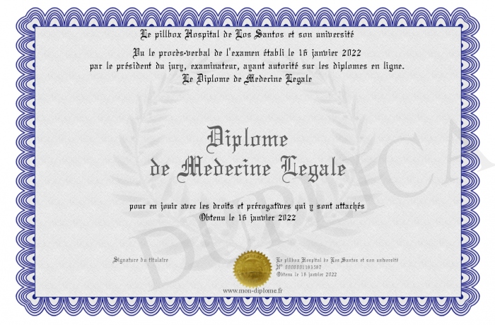 Envoyez par email votre Diplôme de Medecine Legale personalisé