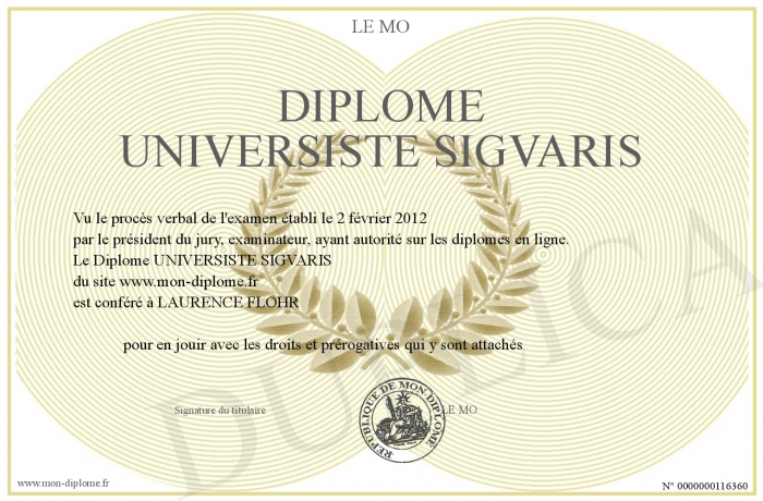 Envoyez par email votre Diplôme UNIVERSISTE SIGVARIS personalisé