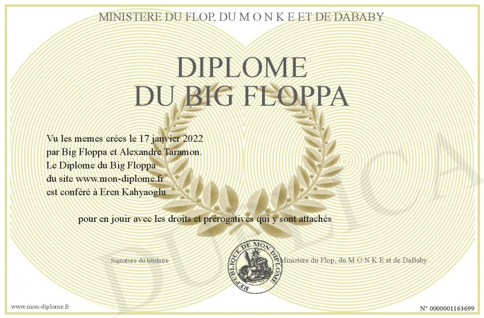 Envoyez par email votre Diplôme du Big Floppa personalisé