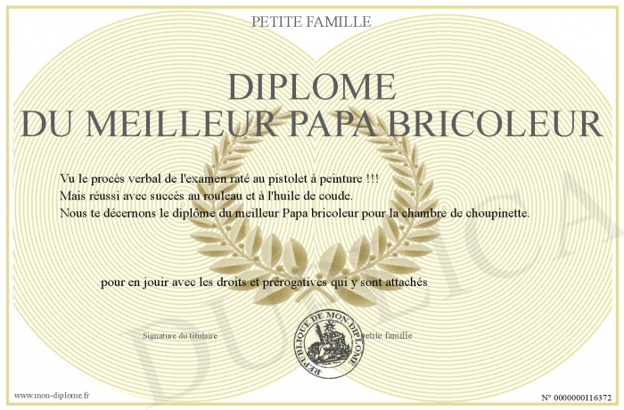 Envoyez par email votre Diplôme du meilleur papa bricoleur personalisé