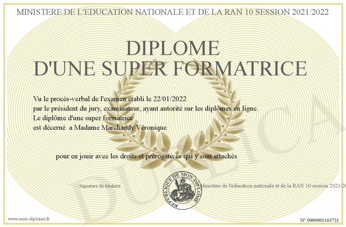 Envoyez par email votre Diplôme d'une super formatrice personalisé