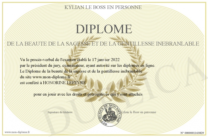 Envoyez par email votre Diplôme de la beauté de la sagesse et de la gentillesse inébranlable personalisé