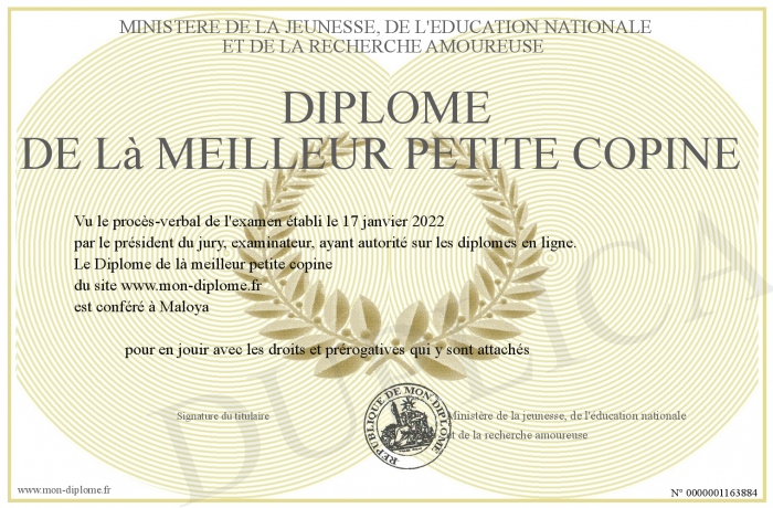 Envoyez par email votre Diplôme de là meilleur petite copine personalisé
