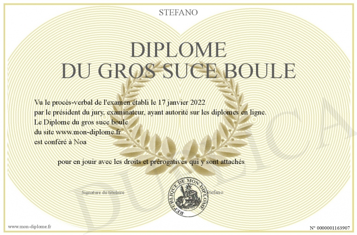 Envoyez par email votre Diplôme du gros suce boule personalisé