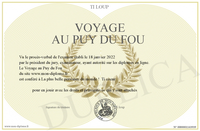 Envoyez par email votre Voyage au Puy du Fou personalisé