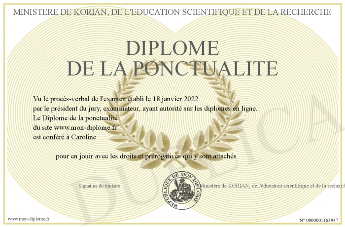 Envoyez par email votre Diplôme de la ponctualité personalisé