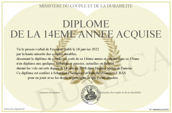 Envoyez par email votre Diplôme de la 14ème année acquise personalisé