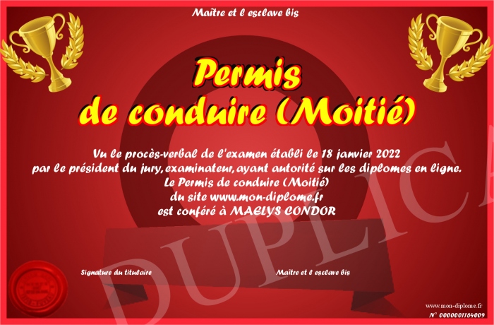Envoyez par email votre Permis de conduire (Moitié) personalisé