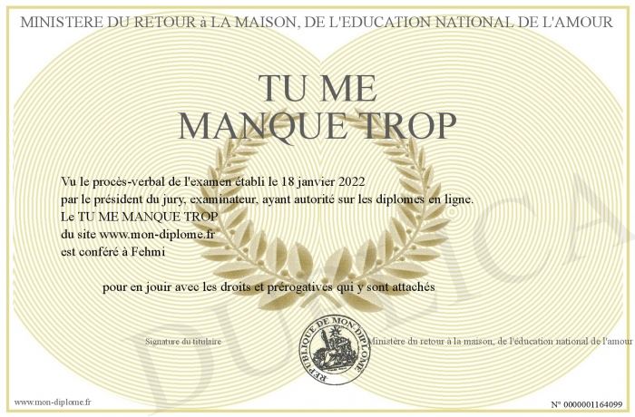 envoyé par le Ministère du retour à la maison, de l'éducation national de l'amour !