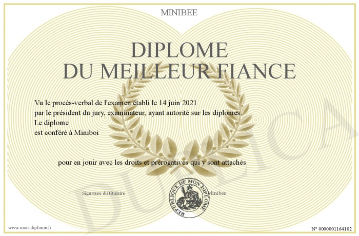 Envoyez par email votre Diplôme du meilleur fiance personalisé