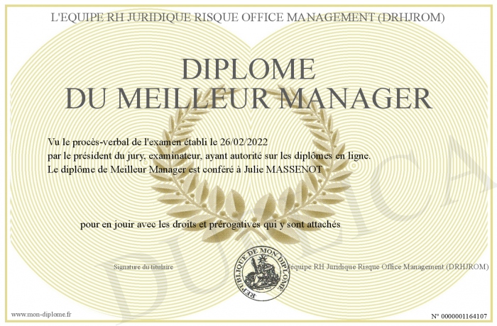 Envoyez par email votre Diplôme du meilleur manager personalisé