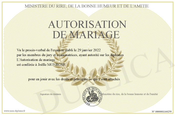 Envoyez par email votre Autorisation de mariage personalisé