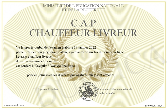 Envoyez par email votre c.a.p chauffeur livreur personalisé