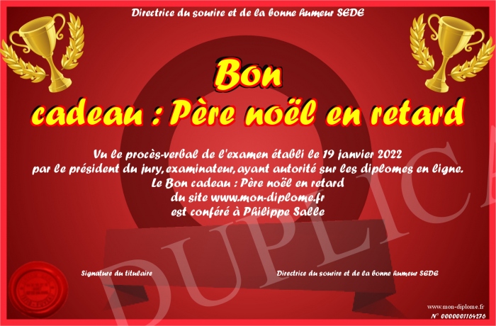 Envoyez par email votre Bon cadeau : Père noël en retard personalisé