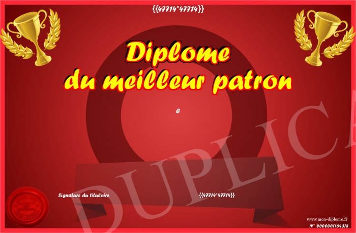Envoyez par email votre Diplome du meilleur patron personalisé