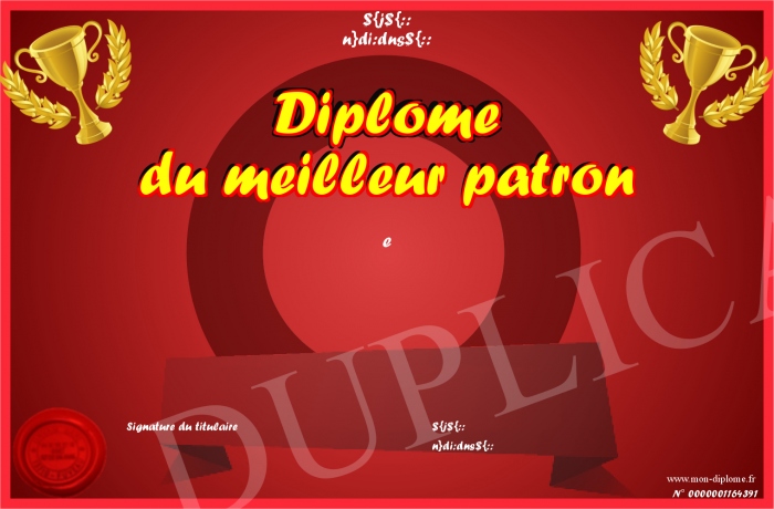 Envoyez par email votre Diplome du meilleur patron personalisé