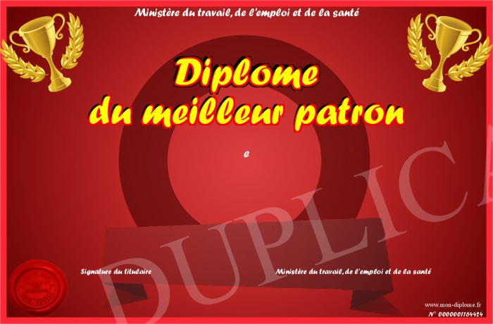 Envoyez par email votre Diplome du meilleur patron personalisé