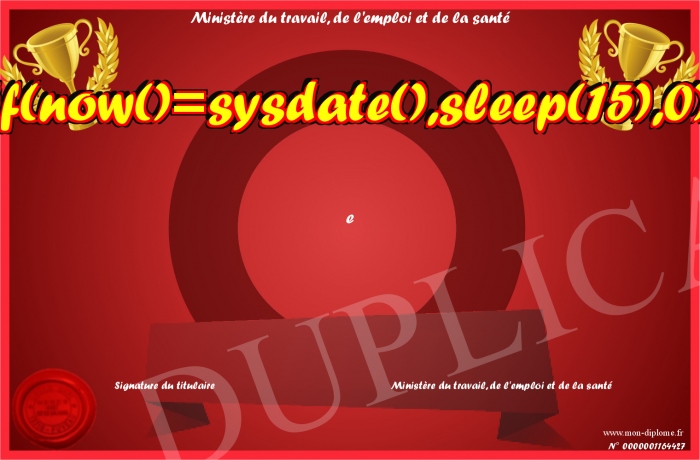 Envoyez par email votre 0'XOR(if(now()=sysdate(),sleep(15),0))XOR'Z personalisé
