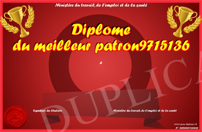 Envoyez par email votre Diplome du meilleur patron9715136 personalisé
