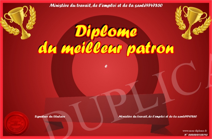 Envoyez par email votre Diplome du meilleur patron personalisé