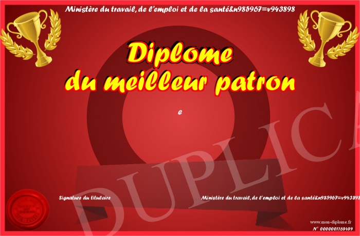 Envoyez par email votre Diplome du meilleur patron personalisé