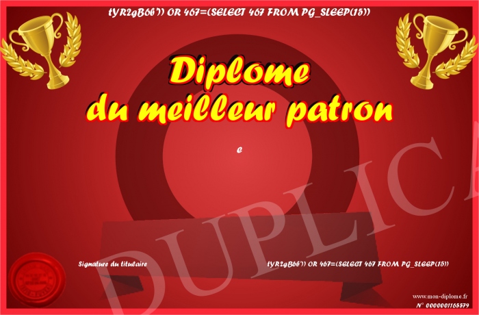 envoyé par le tYR2gB6b')) OR 467=(SELECT 467 FROM PG_SLEEP(15))-- !