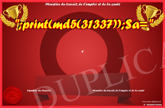 Envoyez par email votre -;print(md5(31337));$a=- personalisé