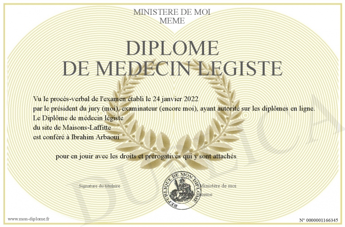 Envoyez par email votre Diplôme de médecin légiste personalisé
