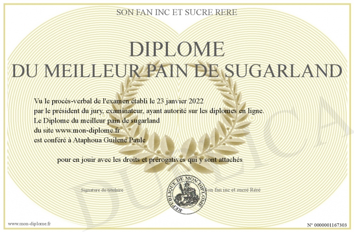 Envoyez par email votre Diplôme du meilleur pain de sugarland personalisé