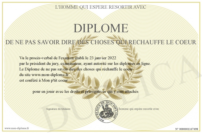 Envoyez par email votre Diplôme de ne pas savoir dire des choses qui réchauffe le coeur personalisé