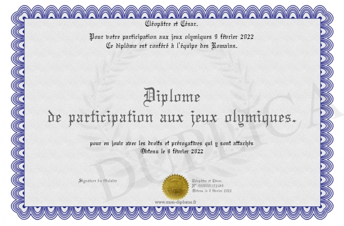 Envoyez par email votre Diplôme de participation aux jeux olymiques. personalisé